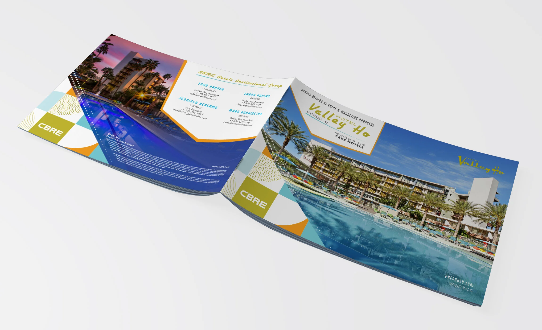 Hotel Valley Ho was a Broker Opinion of Value proposal for a hotel located in Scottsdale, AZ. This was a super fun and rare opportunity for me to push some fun colors and funky design into a formal BOV request. It’s not often in my role that I get to play with exciting and playful colors and it was really enjoyable to explore some retro and untraditional design and typefaces.
